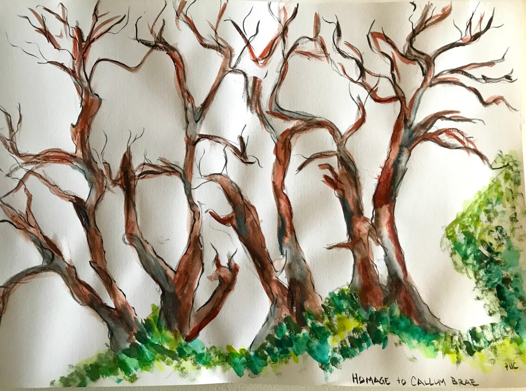 I look up at ‘my’ big gums and often think, really, I am theirs… and they will long outlive me (with any luck!). My mum planted them in the ’70s and now they tower over the yard (hmmmm). The last six weeks I’ve watched a currawong build her nest and now her mate is coming and going feeding her… and there is all-out war as he tries to get past the red wattlebirds on the way! It’s a bird-eat-bird world out there.