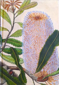 My journal is livened up with a drawing of a banksia on the front cover (photo) And on the inside with 10 full-page color illustrations as well as small sketches of flowering plants that pop up when least expected.